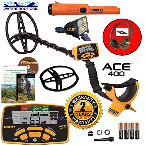 - Also Includes: Garrett 8.5" x 11" PROformance DD Waterproof Search Coil, Adjustable Arm Strap, Garrett ACE 400 Instruction Manual, Garrett Search Coil Hardware Kit, 4 "AA" Batteries Included, FREE Garrett Catalog, FREE Garrett Searcher Magazine, Exclusive 2 Year Warranty